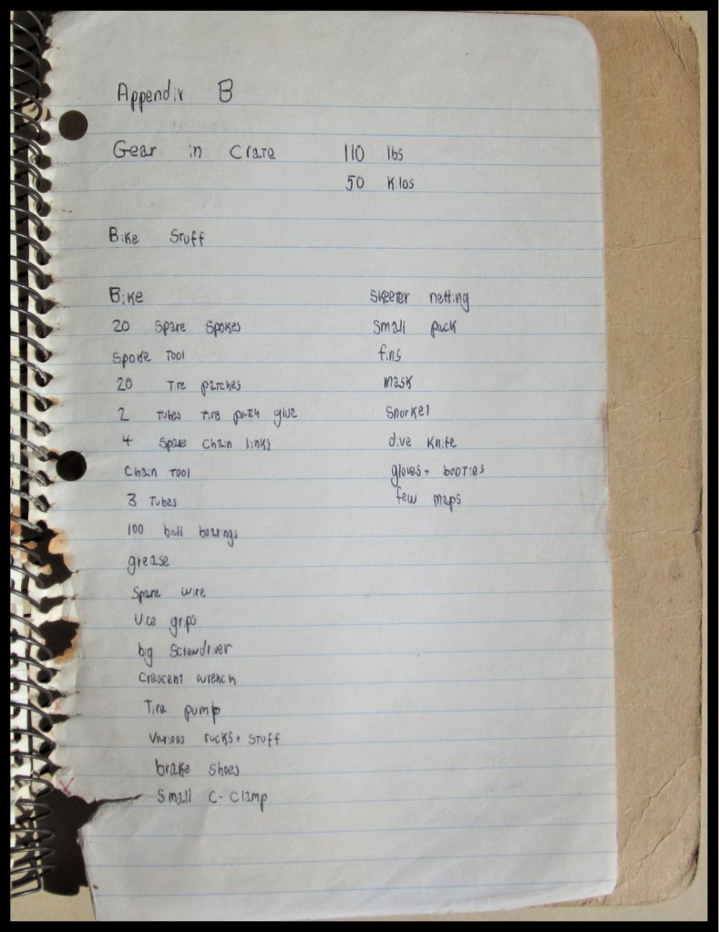 Packed a few more supplies. Duct tape, hose-clamps, needle-nose pliers, nylon cord and epoxy glue. I’d be able to repair any equipment mishap.