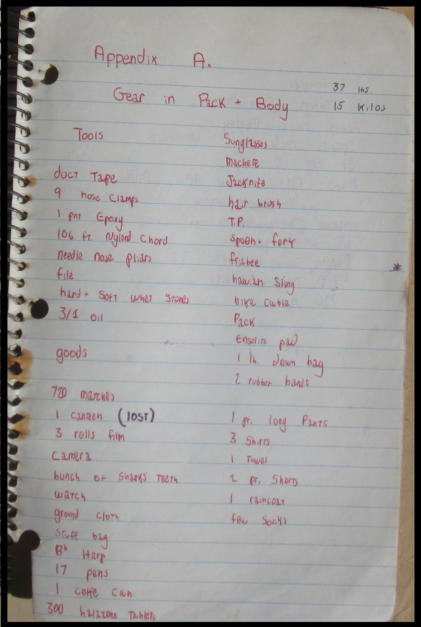I had minimal camping gear: a 1lb Eddie Bauer down bag, tarp, skeeter net and ensolite pad. Plus a 22″ machete, file, whet stones, 3-in-1 oil, Puma jackknife, spoon, fork, watch and sunglasses. 300 halazone water purification tablets and 720 matches.